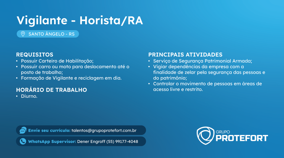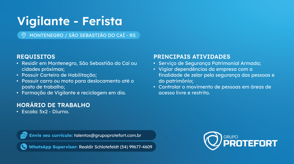 Somos especializados na prestação de serviços de Vigilância Armada, Sistemas Eletrônicos e Facilities. O Grupo Protefort é composto por mais de 6 empresas, com mais de mil e quatrocentos colaboradores preparados para atender você de acordo com a sua necessidade.