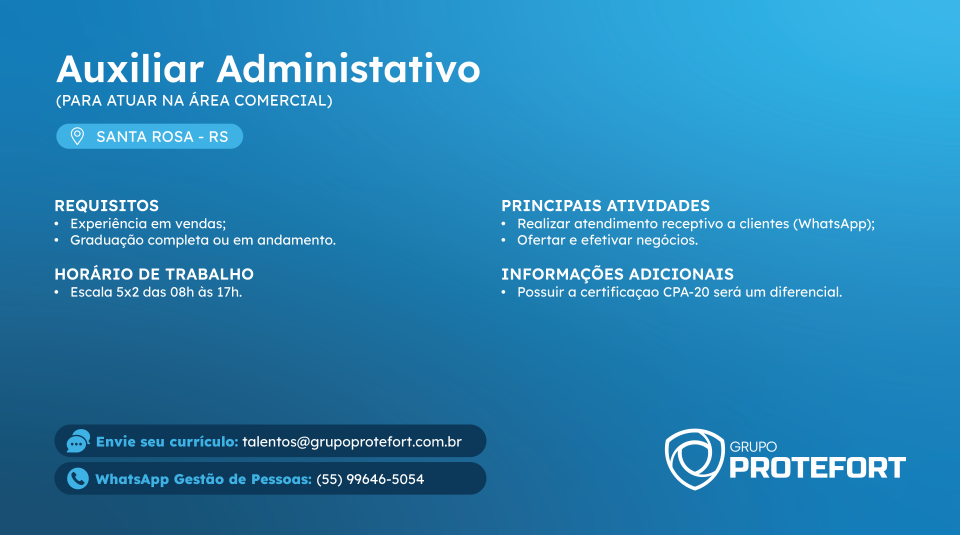 Estamos contratando! Auxiliar Administrativo - Santa Rosa RS.